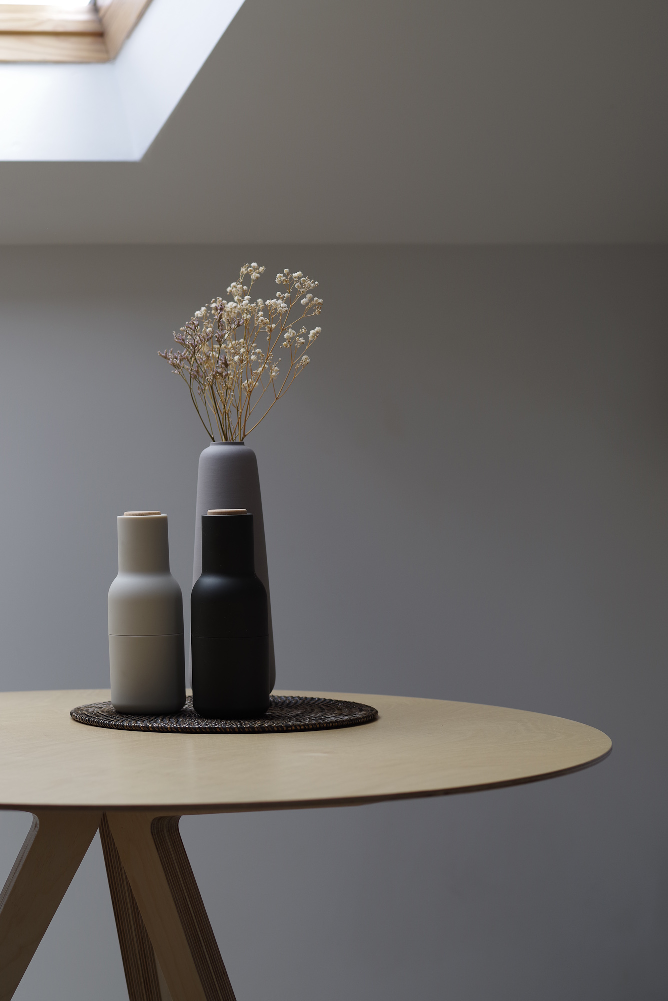Material efficency, stability and beauty were the key criteria for this table. The edge is gently tapered to suggest create the illusion of thin-ness without reducing the strength.